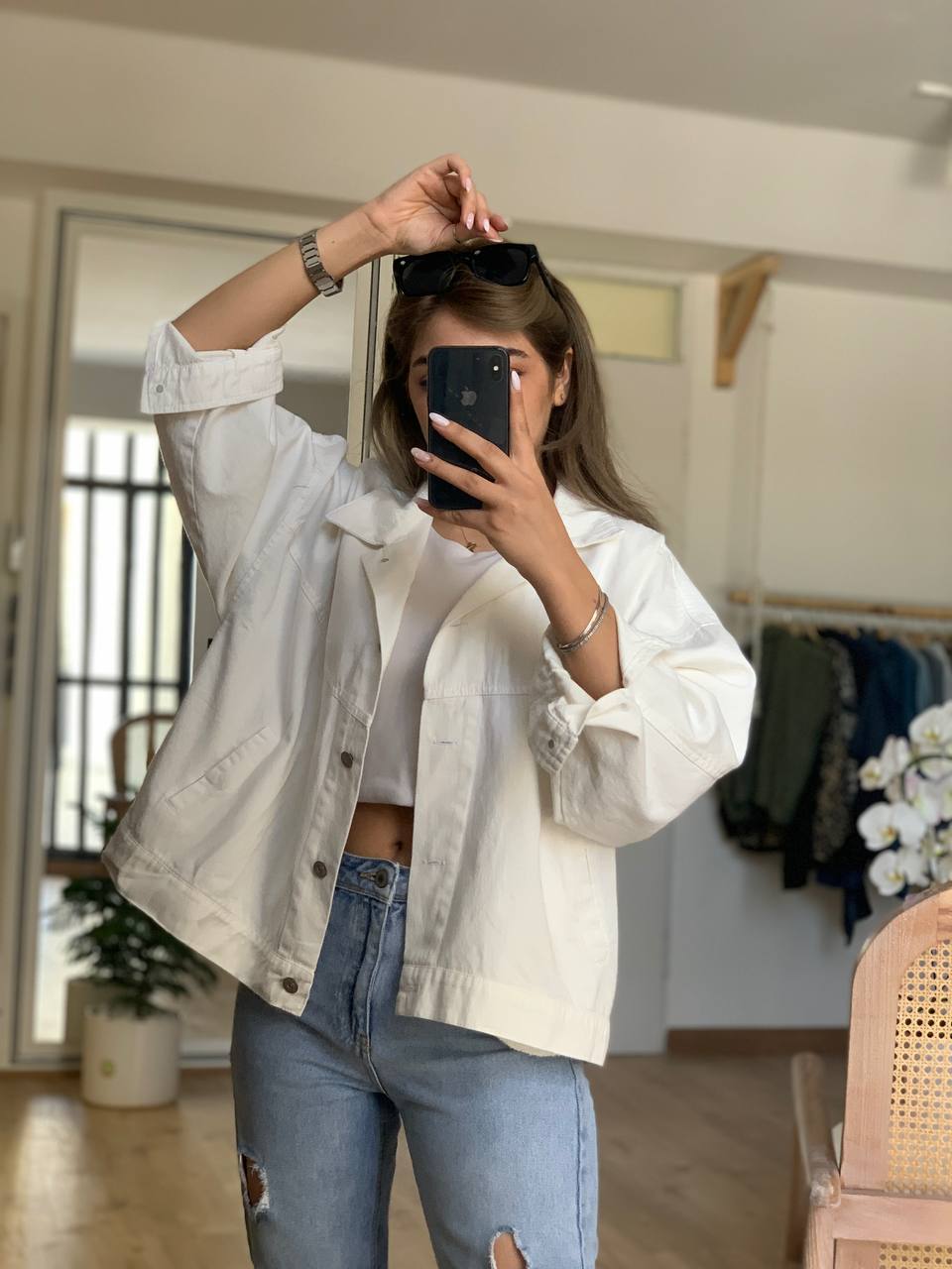 کت کتان فری سایز دو رنگ سفید و زیتونی