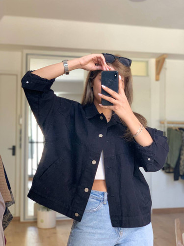 کت کتان فری سایز دو رنگ سفید و زیتونی